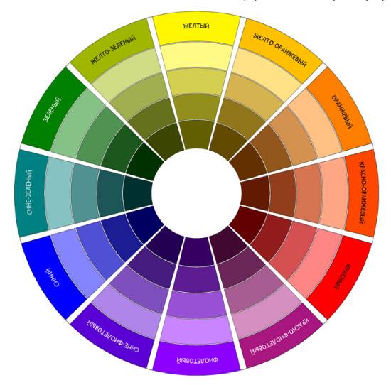 Цвета, находящиеся друг напротив друга, являются контрастными.