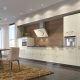 В фасадах встроена вся техника, включая холодильник и микроволновую печь. Изюминкой проекта является современный дизайн центральной части.