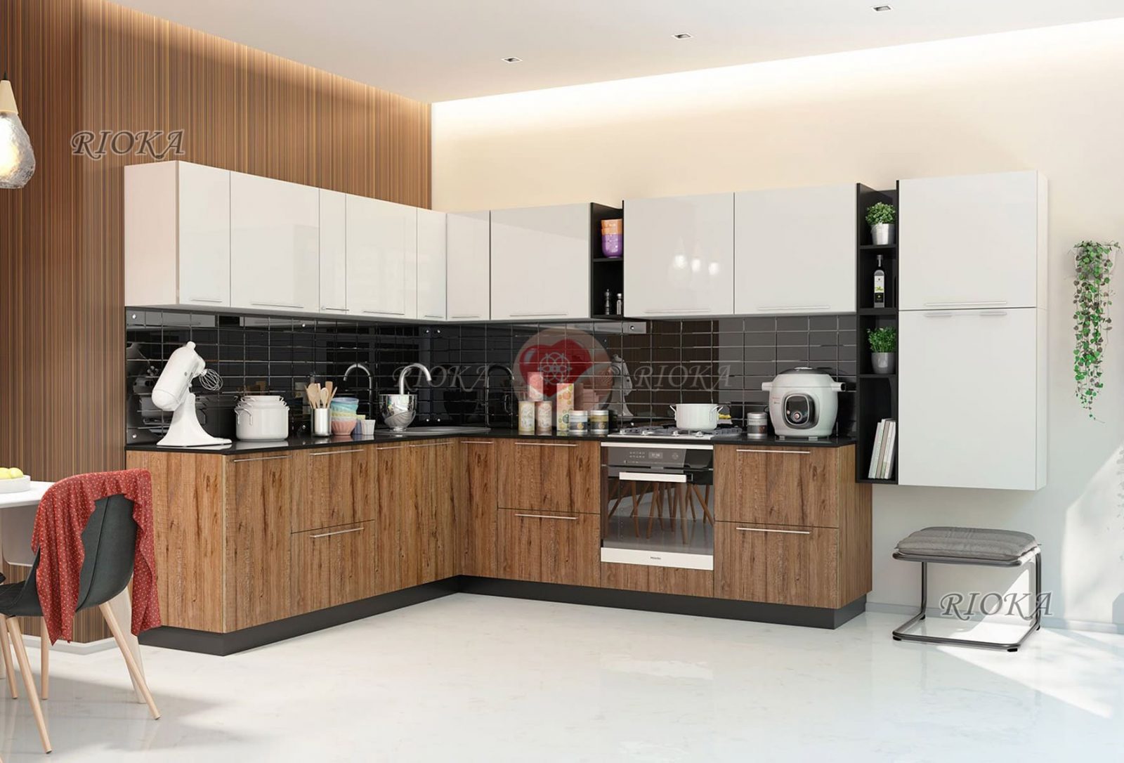Угловой комплект стиля модерн Ния. Яркий глянец фасадов добавляет света и визуально расширяет пространство, делая данную модель, кроме прочего, прекрасным вариантом обновления помещения средних габаритов с недостатком естественного освещения. Позволить себе иметь идеальный гарнитур Ния можно без опасений сложного ухода за ним. На самом деле уход за ним сводится к легкой протирке. У комплекта есть много достоинств и кроме эстетики. Прежде всего, это удобно спланированная рабочая зона с большой площадью столешницы. Вы можете дополнить данную кухню стильной барной стойкой или эргономичным кухонным островом, а комплект современной встраиваемой техники сделает кухню по-настоящему удобной и функциональной. Все подробности уточняйте у наших специалистов. 2021
